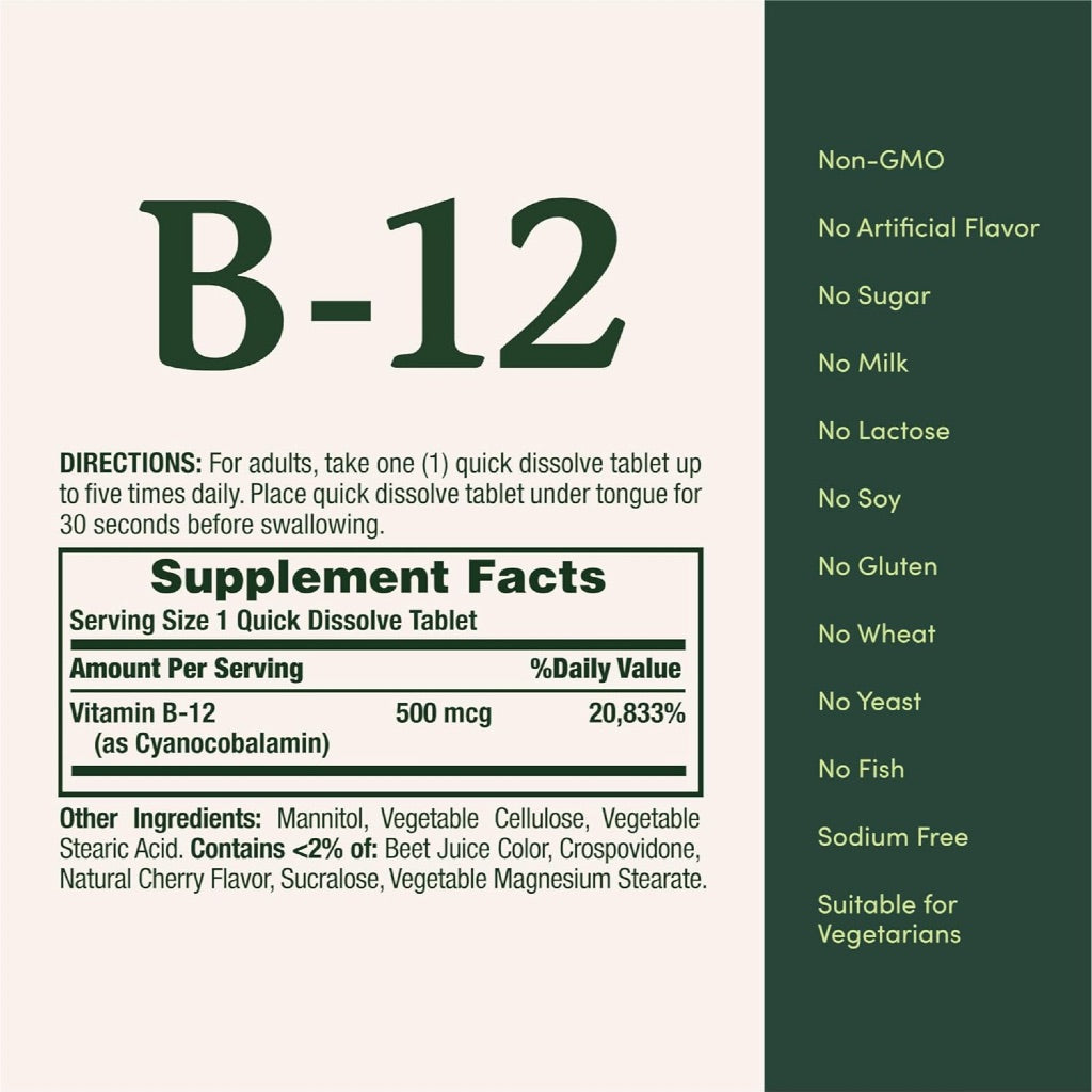Nature’s Bounty Vitamin B 12 500mcg Natural Cherry 100 Quick Dissolve Tablets