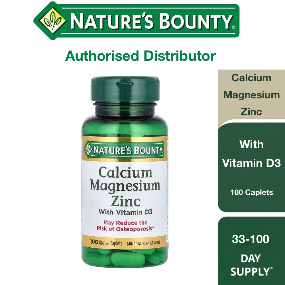 Nature’s Bounty Calcium Magnesium Zinc with Vitamin D3 – 100 Coated Caplets 💊