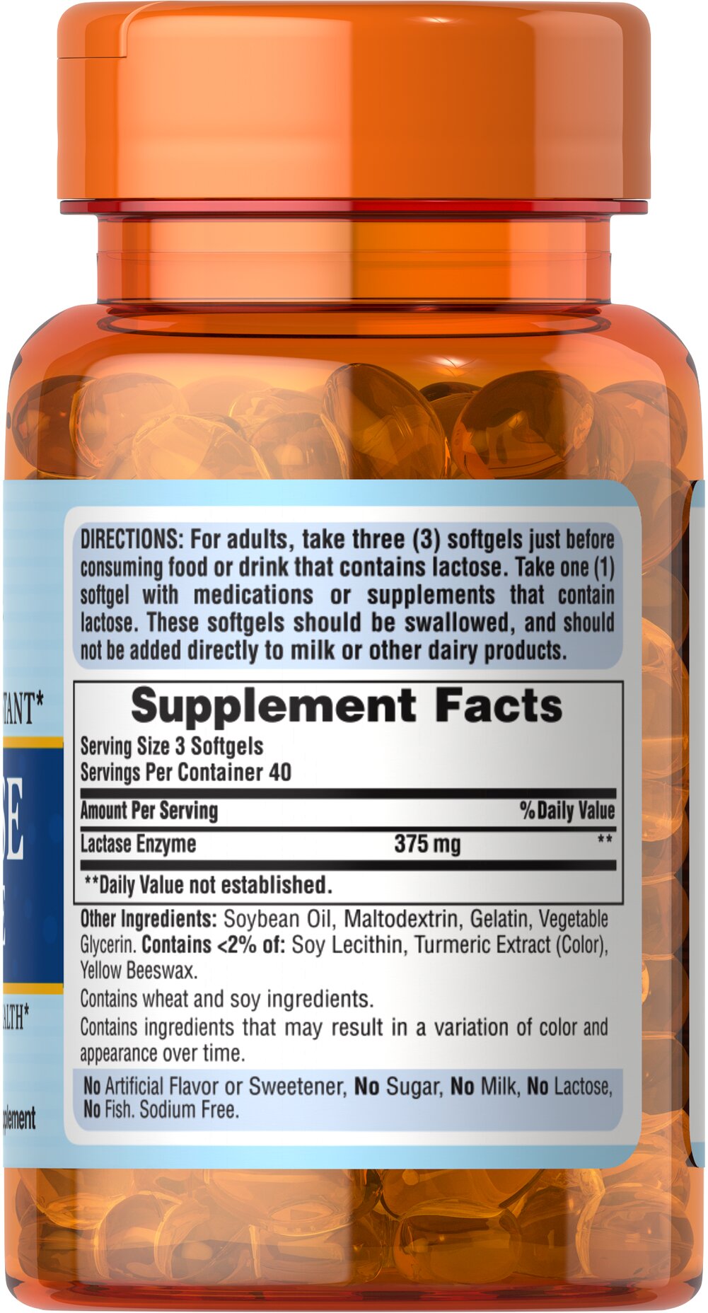 For best results, take three (3) softgels immediately before consuming food or beverages that contain lactose.