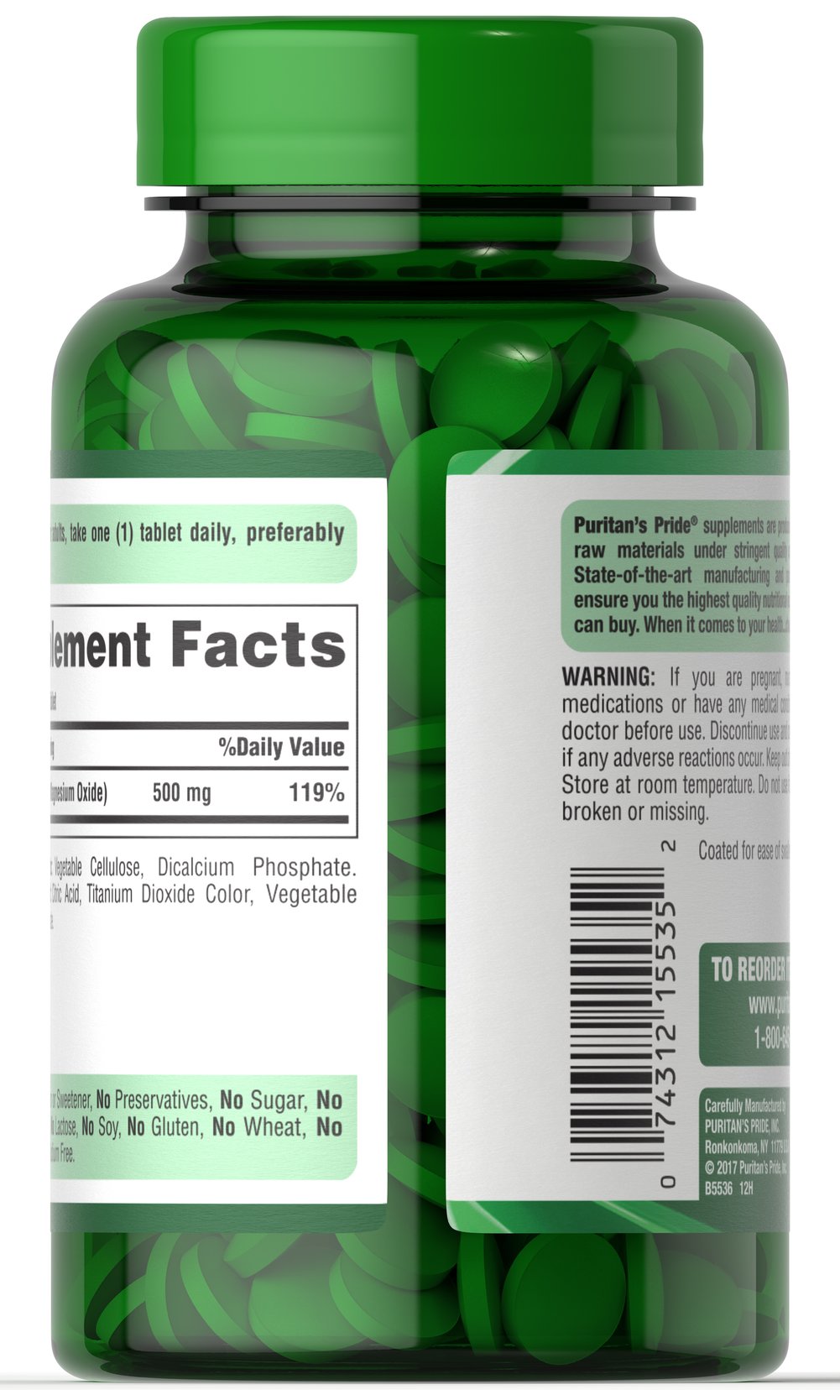Puritan's Pride Magnesium 500 mg / 100 Tablets / Item #005535