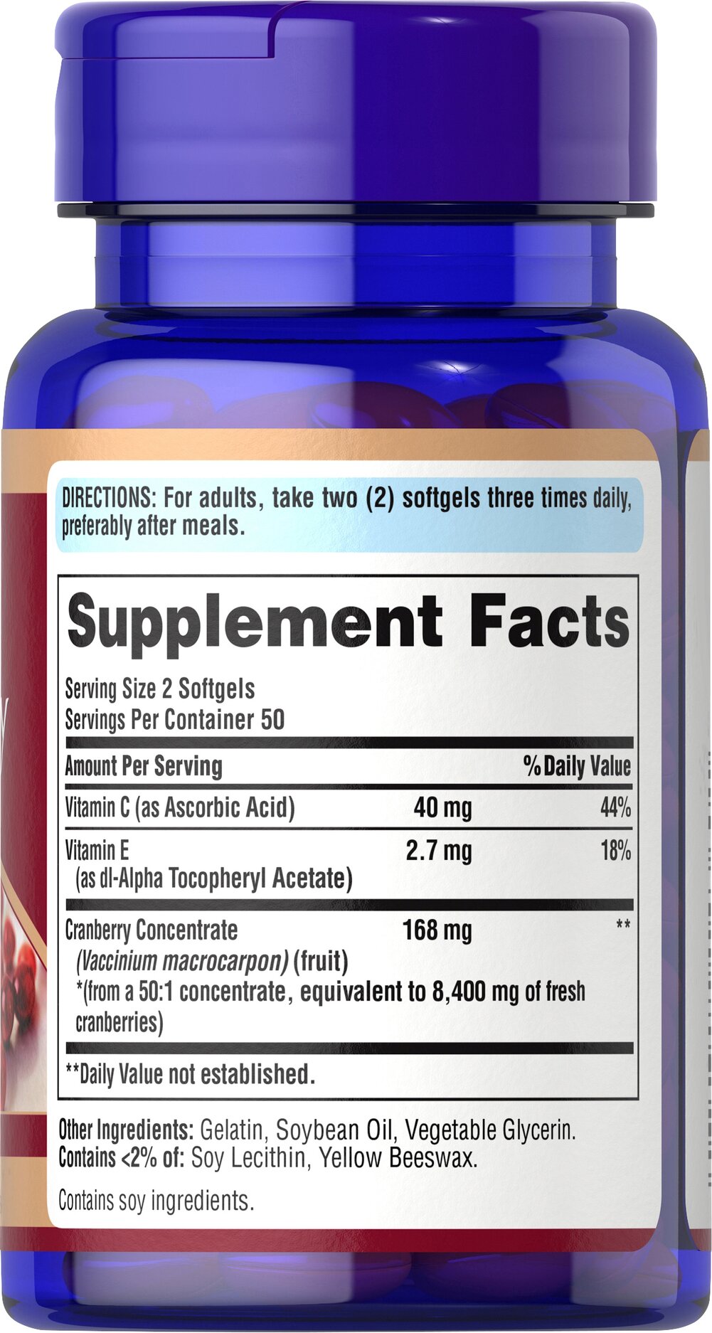 Puritan's Pride Cranberry Fruit Concentrate with C & E 4200 mg / 100 Softgels / Item #004360